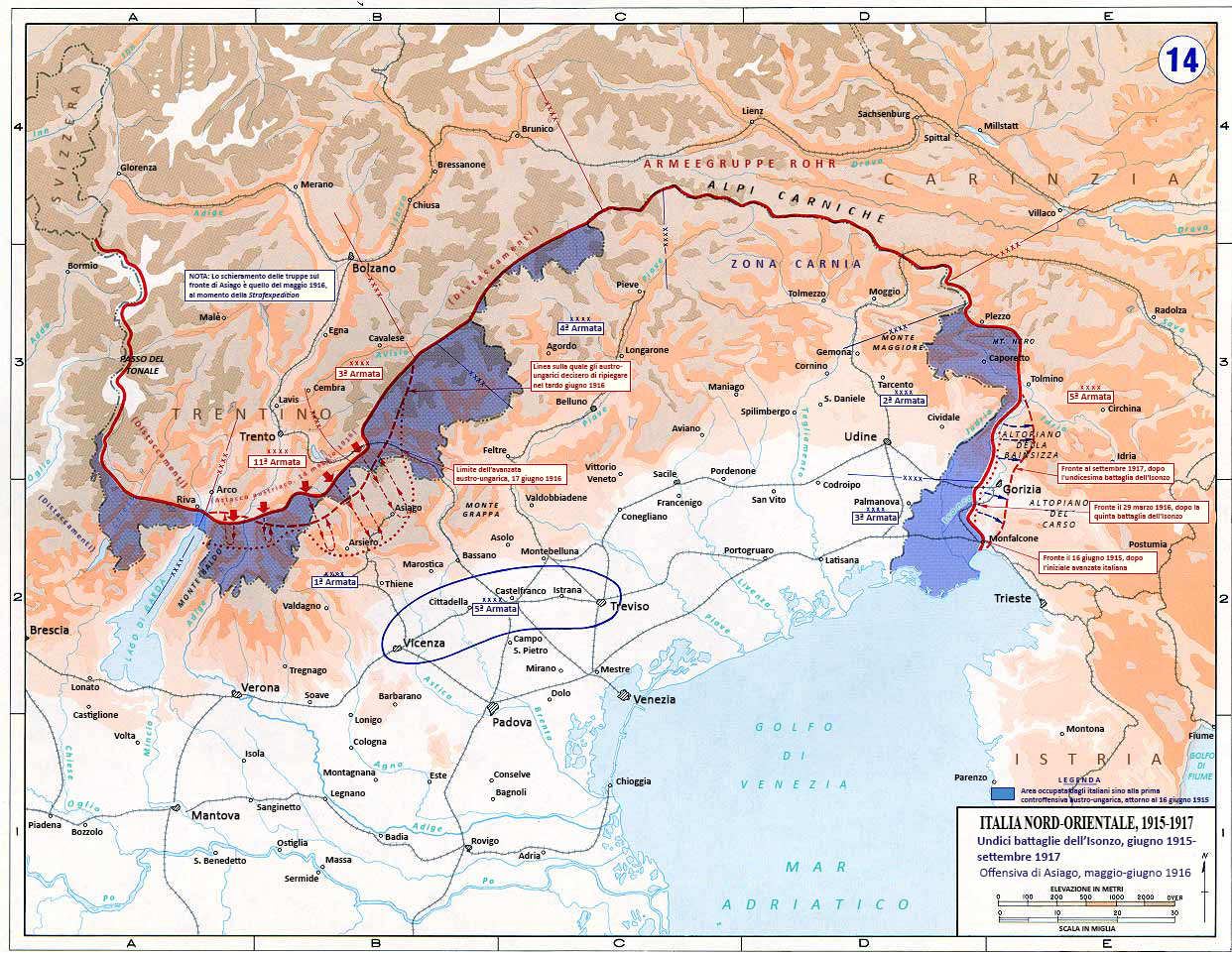 d’armata XXII, XX e XVIII, sull’Altopiano di Asiago